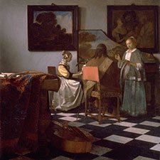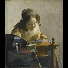 Girl with a Pearl Earring, painted by Johannes Vermeer around 1665, is a masterpiece of the Dutch Golden Age. The oil-on-canvas painting depicts a young girl wearing a striking turban and a luminous pearl earring. Her direct gaze and enigmatic expression, set against a dark background, create a timeless and intimate effect. Vermeer's use of light and shadow enhances the realism and beauty of the composition.